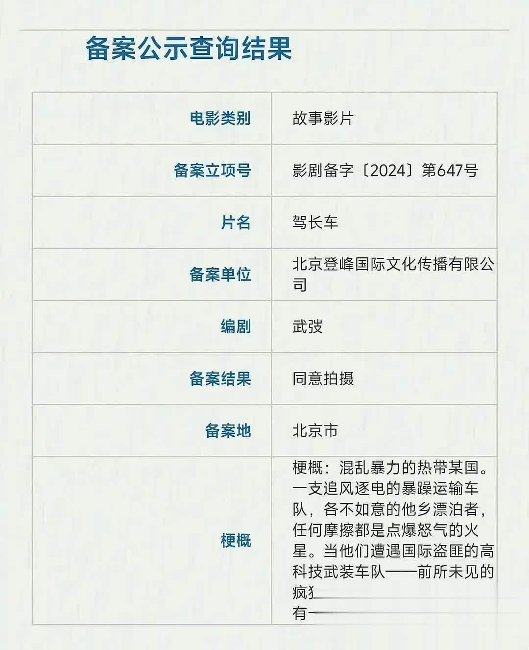 第一个就是已经杀青,离上映不远的《驾长车》。