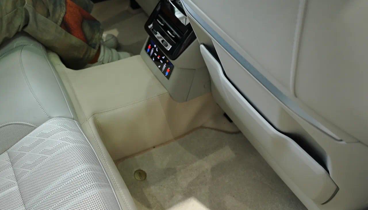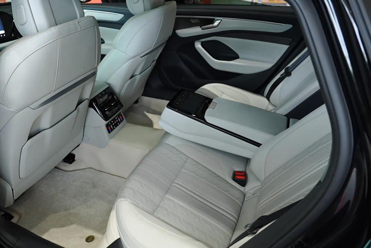 我最喜欢的是顶部包裹材质的麂皮绒,触觉丝滑得像婴儿的肌肤。最令人印象深刻的则是后排地板覆面材质,全部是和座椅同色的皮革——以前我们会说豪华车就是膝部以上都是软质皮革包裹,全新奥迪A6L相当于脚下也都是皮革包裹。