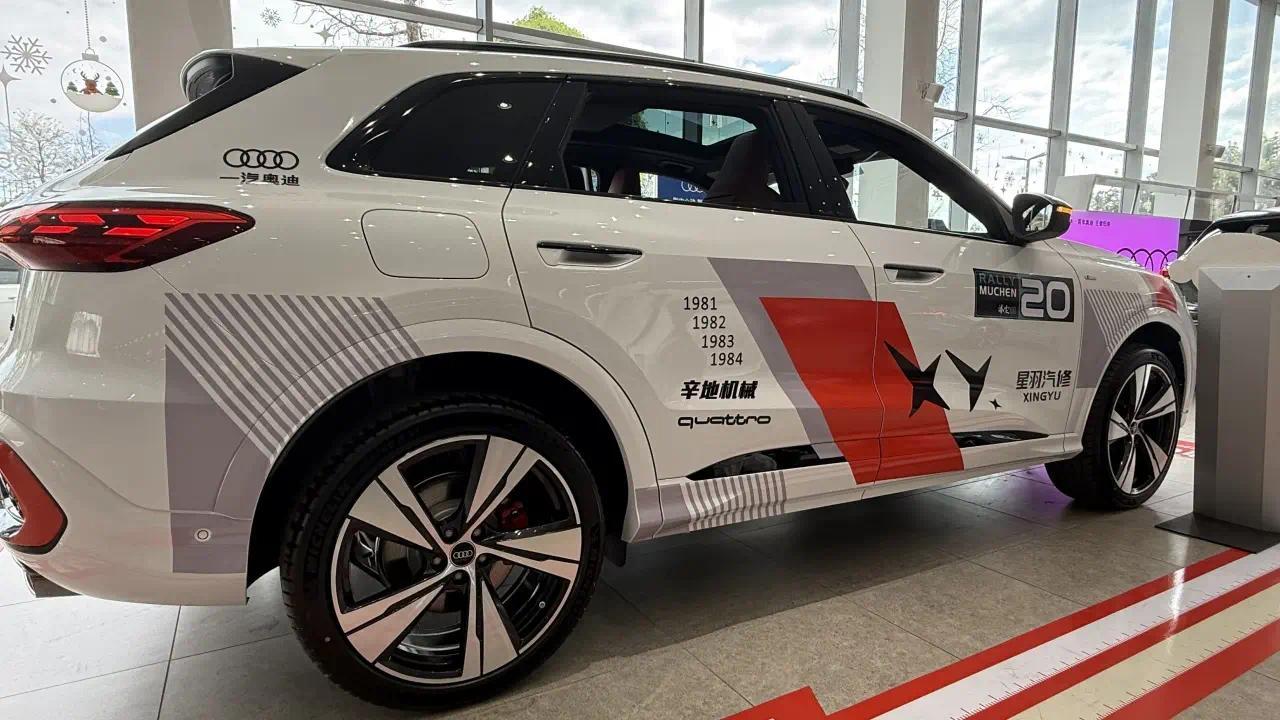 但有意思的是,店内也很应景的放了一台贴有官方车衣的“辛地机械”版车型——然而,这台车却是全新Q5L。看得出,从经销商的角度来说,已经上市交付的这台全新车型受重视程度更高,希望通过这波《飞驰人生3》,能够把一些关注度引流到这台C位新车身上。