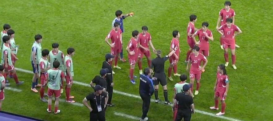 此后的比赛里,虽然朝鲜女足率先打破僵局,一度取得了1-0的领先,但是中国女足凭借着陈巧珠和王霜的进球,在半场就将比分逆转为了2-1!在王霜打进第二粒进球后,输不起的朝鲜球员直接站在了场边,任凭主裁判怎么呼喊,也迟迟不愿进场,她们似乎想用罢赛的方式,向主裁判表达抗议。眼见朝鲜球员态度坚决,主裁判也没有惯着她们,索性直接吹响了半场结束的哨声,上半场就在这样戏剧性的场面中落幕。