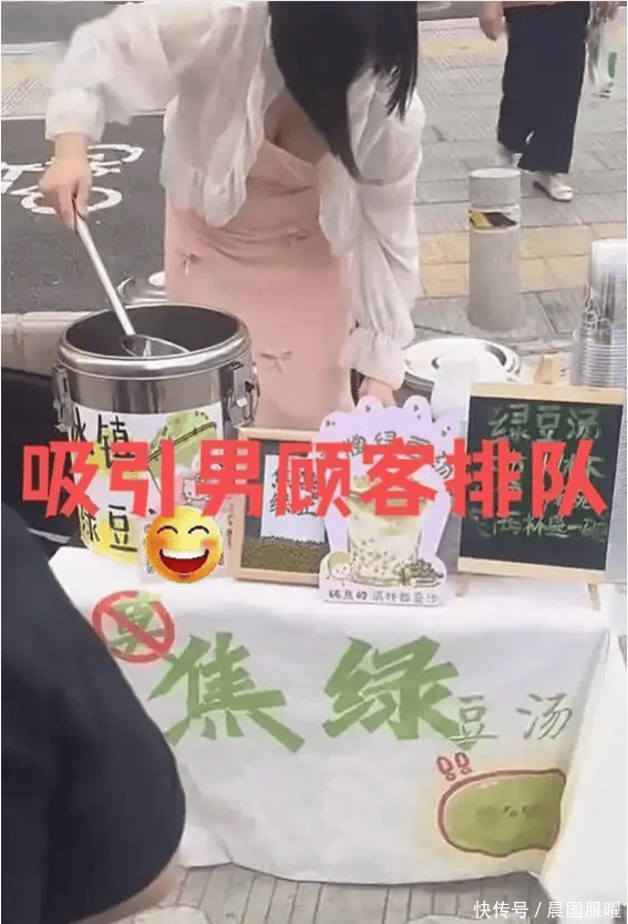 女子穿低胸装摆摊,排队的都是男孩,网友:3元一碗卖爆了,太火了