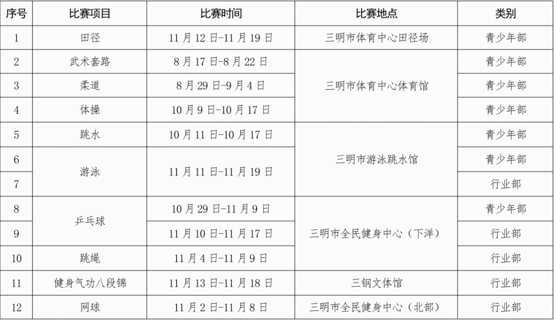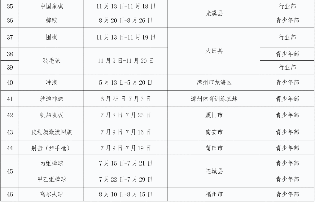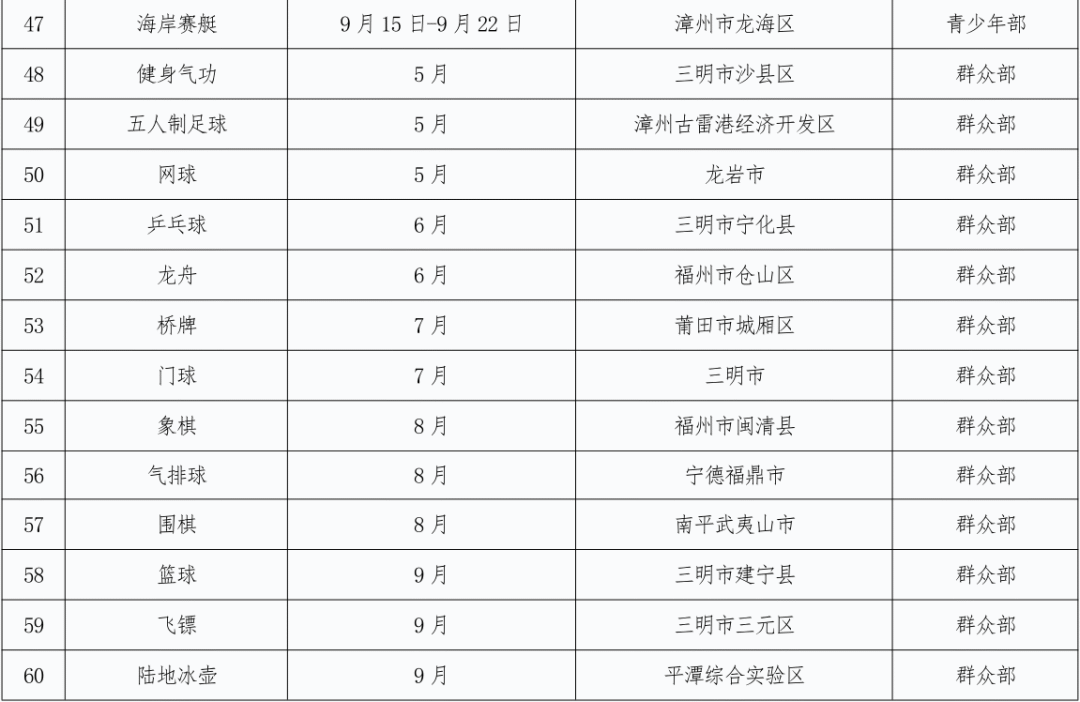 福建省体育局发布通知